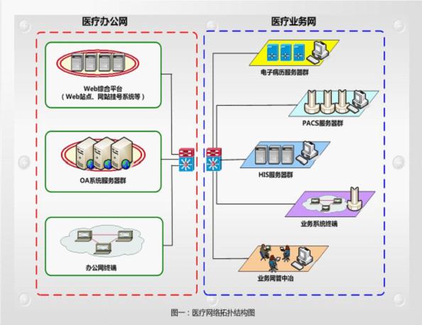 《醫(yī)療衛(wèi)生行業(yè)信息安全等級(jí)保護(hù)實(shí)施指南》明確提出并要求:醫(yī)療機(jī)構(gòu)信息系統(tǒng)中具有HIS、LIS、PACS等二級(jí)系統(tǒng)外,還具有醫(yī)院網(wǎng)站、OA系統(tǒng)的一級(jí)系統(tǒng),那么在不同等級(jí)系統(tǒng)互聯(lián)互通時(shí)采用安全隔離網(wǎng)閘、防火墻、入侵檢測(cè)等邊界安全設(shè)備實(shí)現(xiàn)互聯(lián)互通。