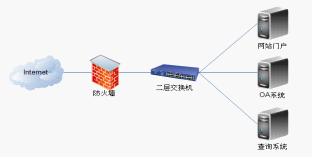 目前某房產(chǎn)局信息網(wǎng)網(wǎng)站邊界采用防火墻做為防護設(shè)備,部署了3臺服務(wù)器, 3臺pc服務(wù)器通過一臺2層交換機與防火墻相連。